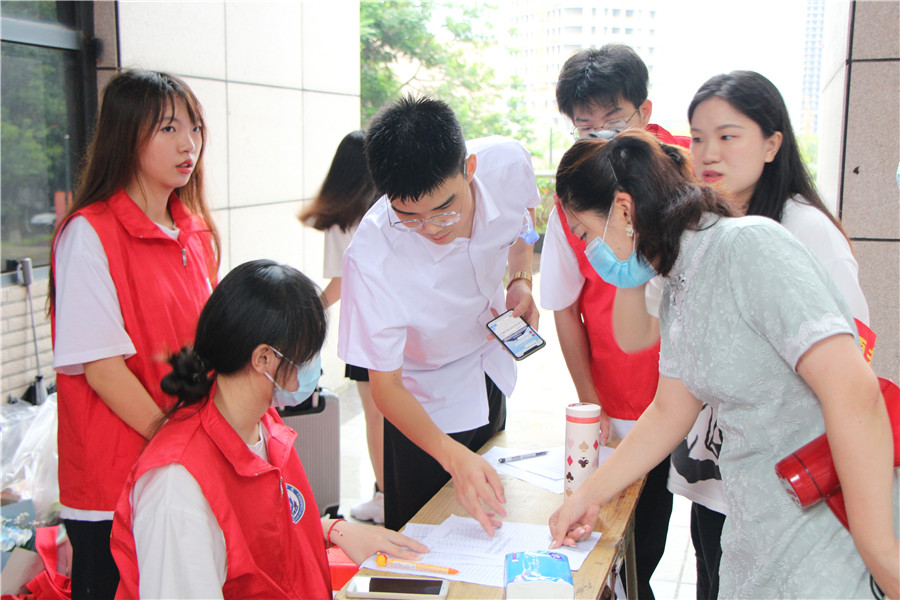 前期党员志愿者通过“暖心短讯”了解毕业生的需求,为当天提供更好地服务做准备。6月19日当天在四教平台设立党员志愿服务点。党员们各司其职,积极为毕业生答疑解惑,协助派发学士服,助力毕业照拍摄工作有条不紊地进行。