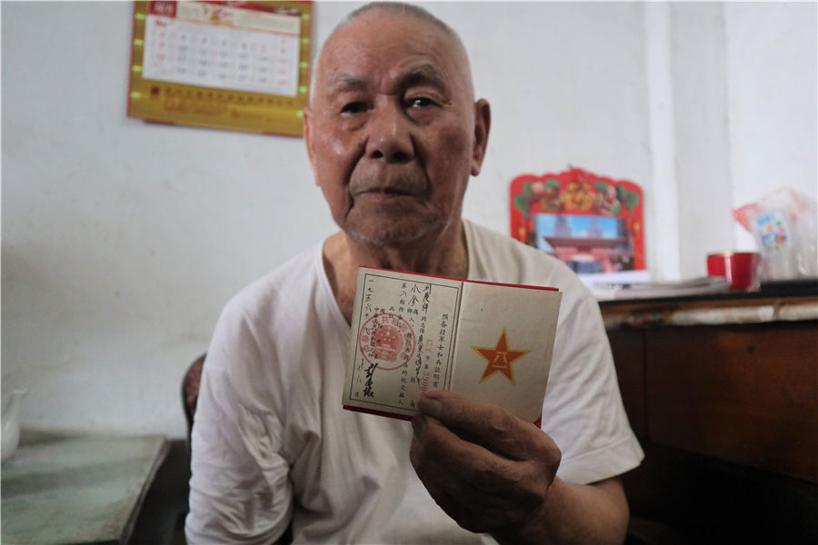 老兵展示退伍证