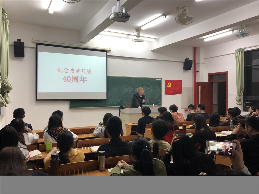 关老师从改革开放的背景、建设具有中国特色社会主义社会、把工作重心转移到经济建设、40年前的老故事与40年后的新传说以及关注民生奋力实现中国梦讲述了中国经济腾飞的40年和中国在改革开放中克服艰难险阻取得的卓越成就。