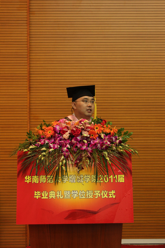 毕业典礼是10:00分开始的。首先响《国歌》,公司领导作了热情洋溢的致词。他对毕业生圆满完成学业表示热烈祝贺;对为培养毕业生付出辛勤劳动的教职工表示衷心感谢;寄语广大毕业生走上社会后要树立远大理想,热爱祖国、报效祖,要心态端正、胸怀宽广,做诚实守信、品德高尚的人;并勉励广大毕业生要勇于创新、敢于创业。毕业典礼的主要环节首先是为25位优秀毕业生颁奖。紧接着为在场毕业生颁发学士学位证书和拨穗仪式,公司领导为毕业生把头上学士帽的流苏从右边换到左边,这代表稻穗或麦穗成熟,象徵毕业生已学有所成,可以展翅高飞。最后,欧莹书记为07届毕业生送上祝福,衷心希望毕业生往后的生活更加灿烂美好。