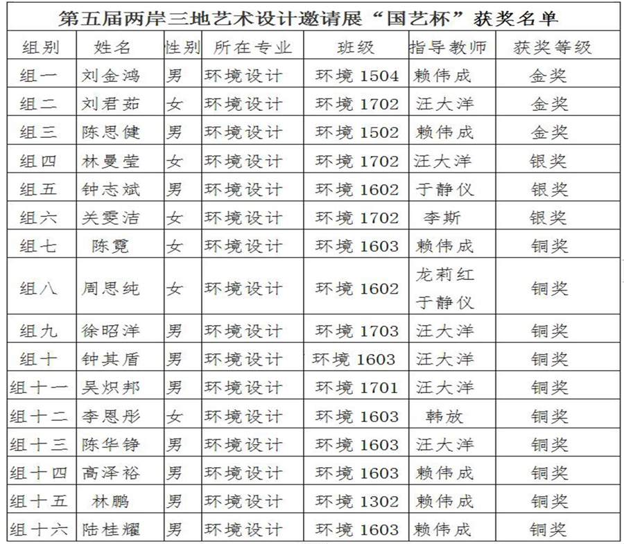 公司bevictor伟德官网环境设计教研室主任龙莉红,专任教师赖伟成、汪大洋、于静仪四位教师指导员工们参加竞赛。其中,龙莉红、汪大洋、于静仪也参加了此次教师作品竞赛并获得优异成绩。