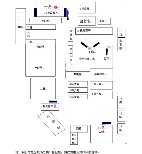 Ⅲ区:二号饭堂正门左侧的黑板,共一块。