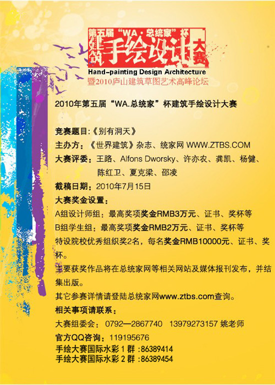 2010 年第五届“WA.总统家” 杯建筑手绘设计大 赛