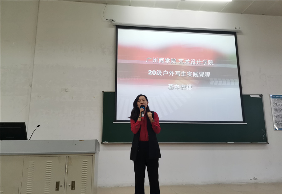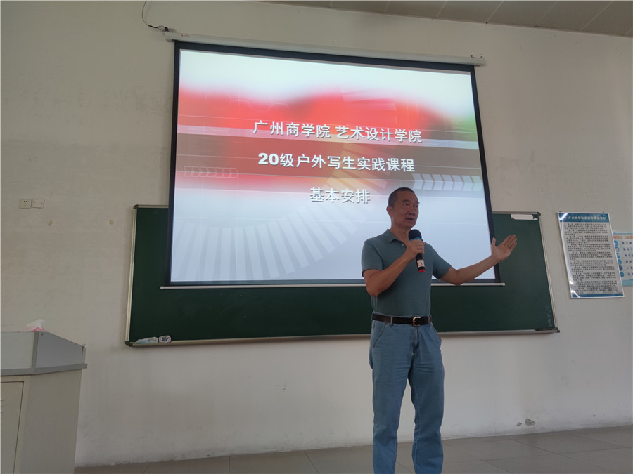 赖伟成从日程计划、住宿安排、安全注意事项以及写生要求等方面全面介绍了本次阳江外出写生实践教学活动。他特别强调:第一、根据专业任课老师要求,准备好写生的工具以及必备的生活用品;第二、再次明确防疫要求,写生期间全体师生需要佩戴口罩,做好个人防疫防护;第三、自觉遵守公司及写生基地的各项规章制度,尊重当地风俗,避免与陌生人发生任何形式的冲突。第四、端正态度,正确理解写生的意义。挥笔画山水,深情绘美景,深入大自然,善于发现自然的美感,结合自身理论知识,深入学习,提升自我,从而创作出更多优秀的作品。