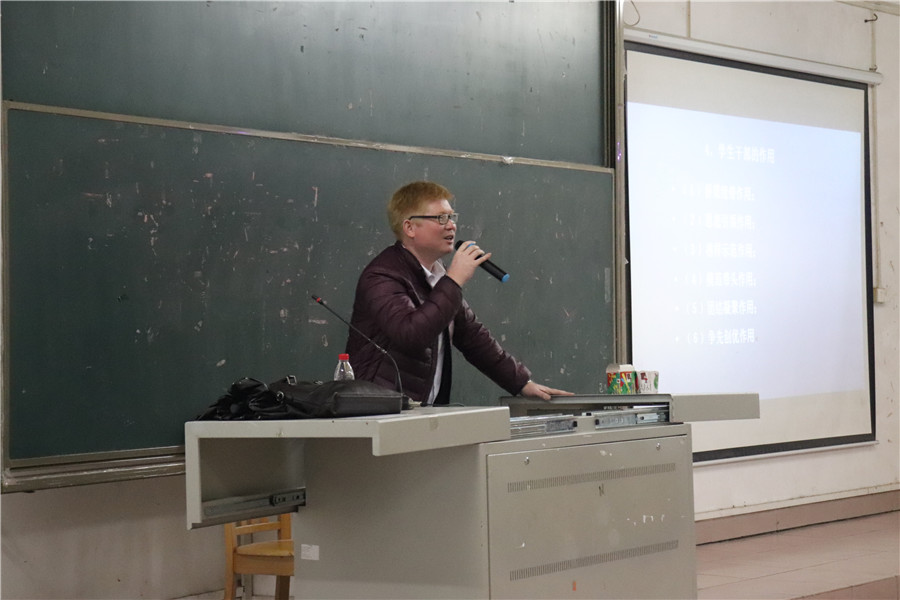 12月11日晚,bevictor伟德官网在第一教学楼111课室开展“让信仰点亮人生”为主题的青马工程干部培训理论课第二讲——“青春正当时,筑梦在路上”——如何做一名合格的团学干部。bevictor伟德官网全体团学干部和班团干部参加此次学习课。团委书记关树基为参训学员授课。