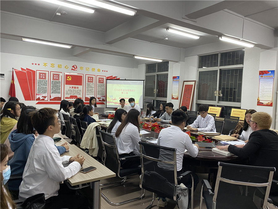 大会第四项议程,学习《习近平谈治国理政》第三卷。本次学习第四专题:“坚持以人民为中心”,习近平总书记在连任国家主席的讲话中提到,他认为作为共产党员,这个题目始终把人民放在心中最高的位置,是每个人必须要做到的。员工党支部书记关树基结合习近平总书记的讲话对员工党员提出建议,他认为:成为党员、成为班团干部、成为团学干部,是组织对其一份信任,我们每一个人都应做到心中有党,心中有人民,人民至上。无论是疫情防控下执行的晚点名、宿舍网格化管理还是开展形式多样的团日活动和主题班会,都是党和组织交给我们的任务,我们都应该不打折扣的去落实。