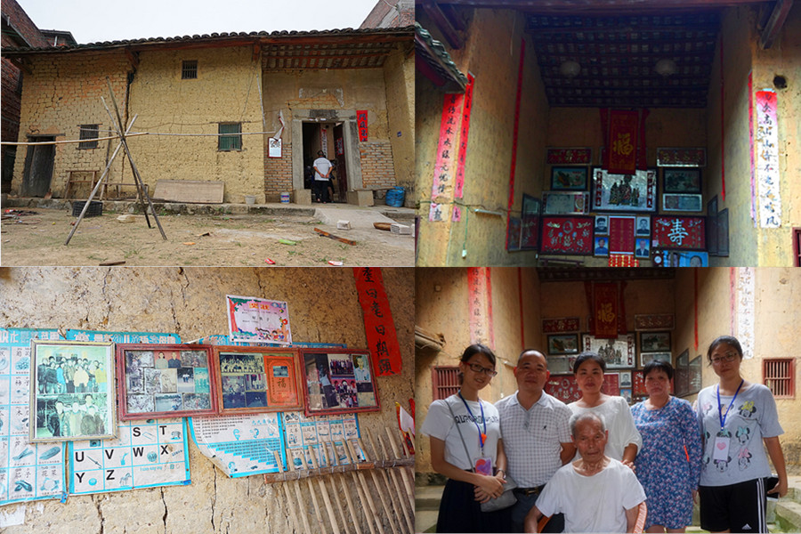 当天走访的对象中,有3户是登畲村的特困户。这些家庭都比较偏远、交通不便、劳动力缺乏,且生活条件极为艰苦。温晋忠介绍道,申请“低保户”的家庭人均月收入须低于335元。起初队员们对这个数字还没有切实的感受,然而在实际了解每一户的困难情况时,队员们的心情都极为震撼,着实感受到了他们生活的不易。其中,让队员们印象最深刻的是一位曾经参加过抗美援朝战争的老人——温焕仁,现年84岁,双耳失聪。他住的是一栋两层楼的泥土房子,传统的“三上三下”格局,二楼用木板搭建,已经破旧不堪,十分危险;大厅墙面上的家庭照、纪念照、已经褪色的红灯笼和对联,仿佛述说着这个家庭对于幸福的向往。通过访谈,我们了解到这户家庭目前由儿媳一人赚钱养家,家里两个学龄孙子目前只有一人能上学。温晋忠及村委队这户家庭非常重视,积极帮助老人上报材料,体现了政府关怀和温暖。