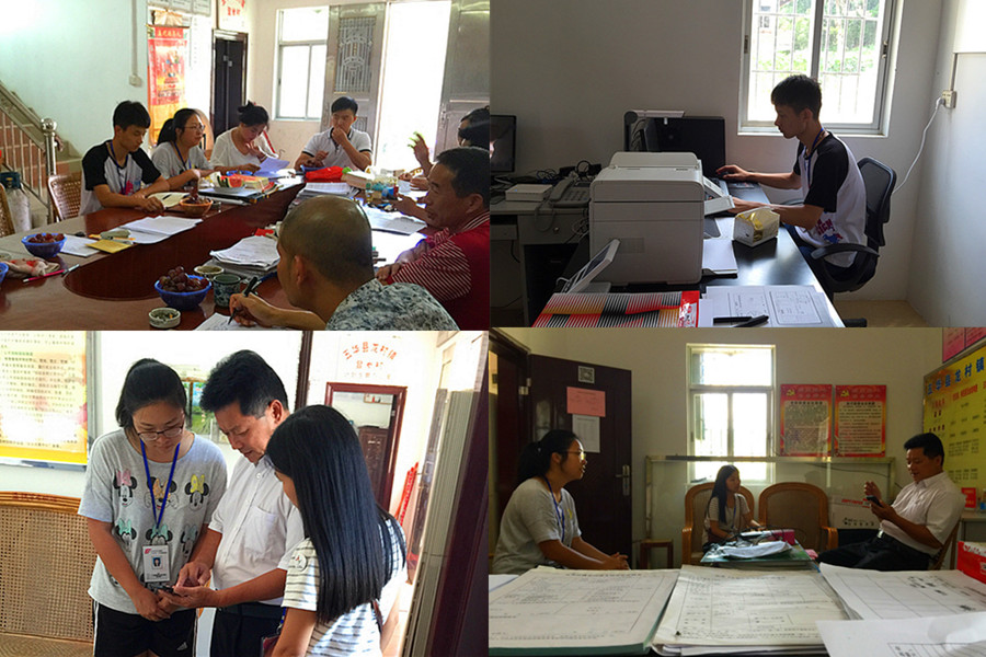 温碧新对服务队10天来在登畲村开展的一系列服务工作给予高度的认可,并关注bevictor伟德官网的微信公众号,希望将服务队的工作报道反映给上级部门。根据村委的安排,见习组队员有幸跟随龙村镇民政办主任温晋忠、干部钟丽灵和温伟发,进行“低保户”申请核查工作。温晋忠开车带见习组走访了5户申请“低保户”的家庭,其中南峰村1户、登畲村4户。一路上,钟丽灵为见习组队员介绍了镇民政办的工作日常,3位公务员几乎每天都在蜿蜒曲折的山路上奔驰,由于申请的村民多且所在地分散,他们经常一整天只能走访几户村民。钟丽灵手上拿着一叠厚重的资料不停地讲解着。看着她摔伤了腿依然坚持工作,队员们心生敬佩。温伟发是一名到基层就业的大学毕业生,他热情地为见习组队员答疑解惑,帮助我们更好地理解相关工作。