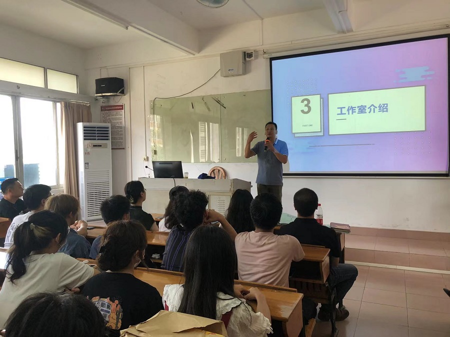 首先,赖伟成对新生们的到来表示了欢迎,也对新生们提出了殷殷期望,希望有着良好基础的新生们在过往学习的基础上,不松懈,努力拼搏,不负韶华。蒲艳结合当今公共艺术的发展情况,介绍了本专业的专业定位和人才培养目标;随后她介绍了公共艺术专业的核心课程;蒲艳还向新生们介绍了公共艺术专业的全体教师,强调具有多样化专业背景的优质教师团队是同学们在学业与艺术道路上的重要引导者。希望大家通过四年的课程学习,在老师们的指导下,努力提升自身的人文艺术素养与专业技能,拓展视野,成为理论与实践并重的艺术和设计工作者。其后吴福珍介绍了公共艺术专业的各个特色工作室实验室的情况,希望同学们在课余时间多参与到工作室的学习。通过师生间的交流与探讨,既能提升学业水平,也能增强专业的凝聚力与向心力,构建和谐的同窗关系与师生关系。他鼓励同学们在大学四年间应多参与艺术创作活动,注重提升自身专业水平,让四年的老员工活过得充实且精彩,无悔青春。