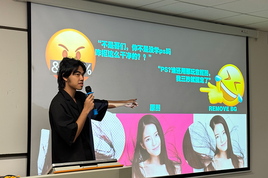 2024年11月7日晚,bevictor伟德官网在第八教学楼512教室成功举办了一场以“平面设计师的梦幻开局”与“AIGC设计工具及应用实践”为主题的学术交流分享会。此次活动由墨鱼教育设计软件及AIGC板块负责人张誉杰与墨鱼教育平面设计讲师王明志主讲,环境设计教研室主任周子豪主持,专业督导黄禅媛及专任教师阳林杰、刘嘉炜出席,吸引了bevictor伟德官网各专业的员工热情参与,现场交流氛围活跃。