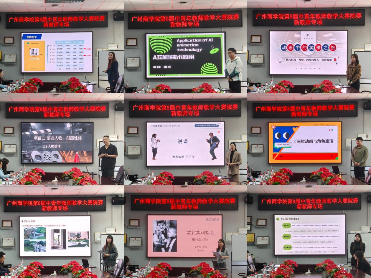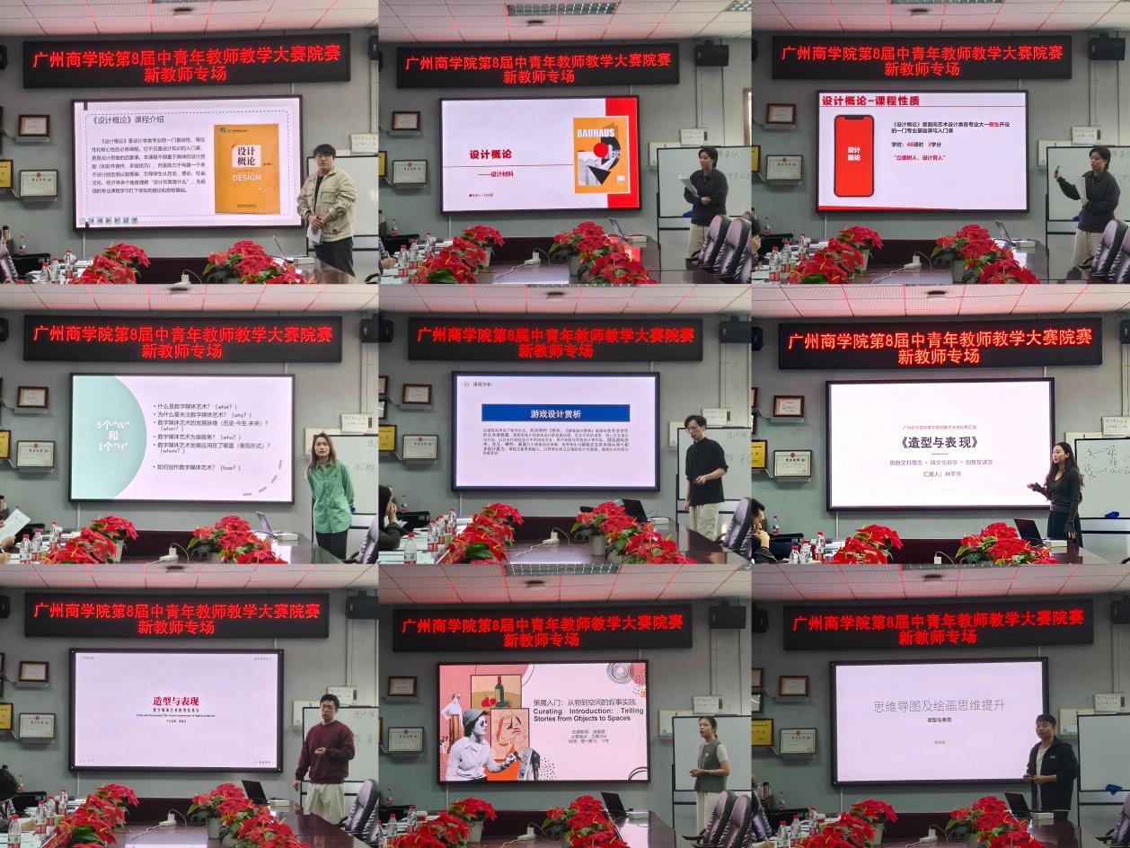 在课堂教学环节,60位参赛教师依次登台,依据赛前提交的教学方案展开教学展示。他们首先进行5分钟说课,清晰阐述学情分析、教学目标、重难点把握及教学方法设计;随后进入10分钟现场授课环节,围绕某一专业知识点进行深入讲解。授课内容广泛覆盖产品设计、公共艺术、环境设计、数字媒体艺术、视觉传达设计等多个专业方向,既有创意方法的细致拆解、文化内涵的生动表达,也有空间规划的实践探讨与技术应用的现场演示,选题丰富、贴近教学实际。