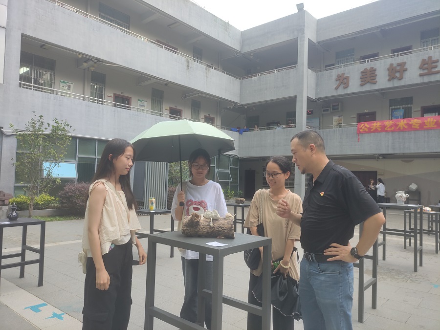 接着,骨干教师潘梦梅作发言。她说,本次展览为公共艺术专业提供了展示的平台,公共艺术专业员工在创作课程中展现出强烈的创作热情,大胆尝试各种新式材料,勇于表达个人真挚的情感,具有一定的开拓创新精神,值得鼓励。最后两位老师分别祝愿本次公共艺术专业优秀课程展顺利举办。