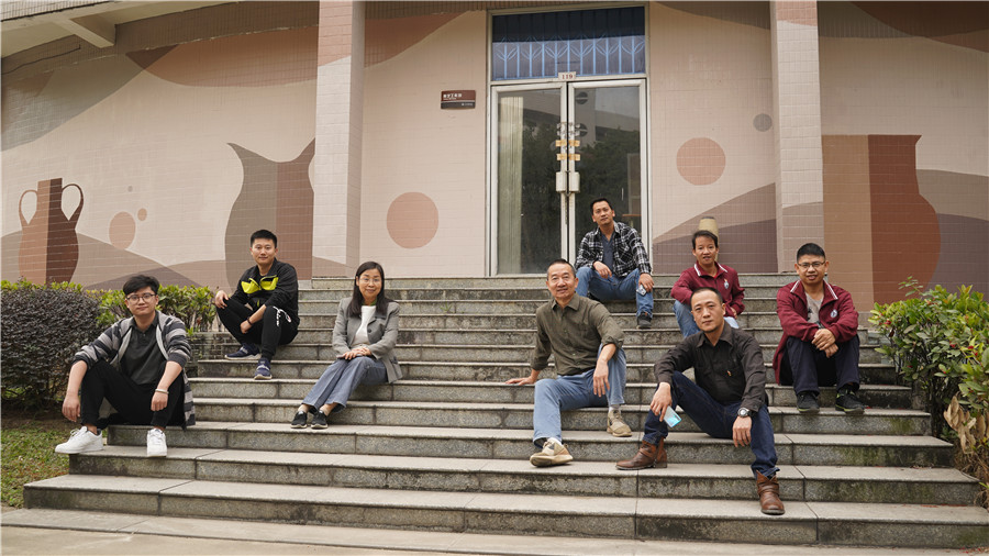 公司领导视察改造后的教学场地并在新改造的陶艺室门前合影