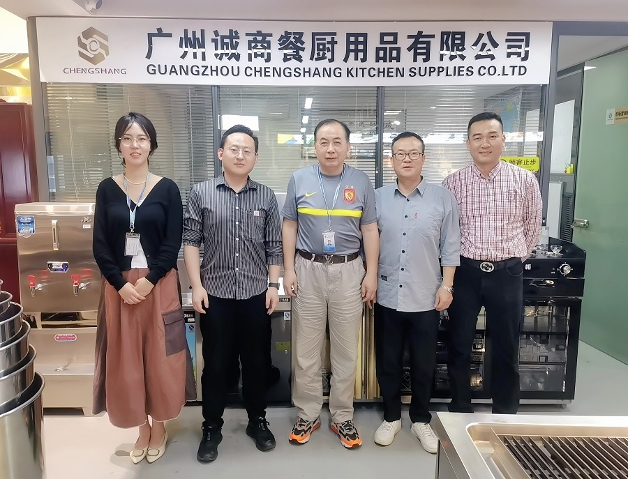接下来, 几位老师又来到广州诚商餐厨用品有限,在企业带领下参观了企业展厅,了解到企业在餐厨用品有较广泛的产品类别。公司愿意为2020级员工赴企业课程调研、参观提供丰富的产品案例,同时愿意接收实习生来公司实习。