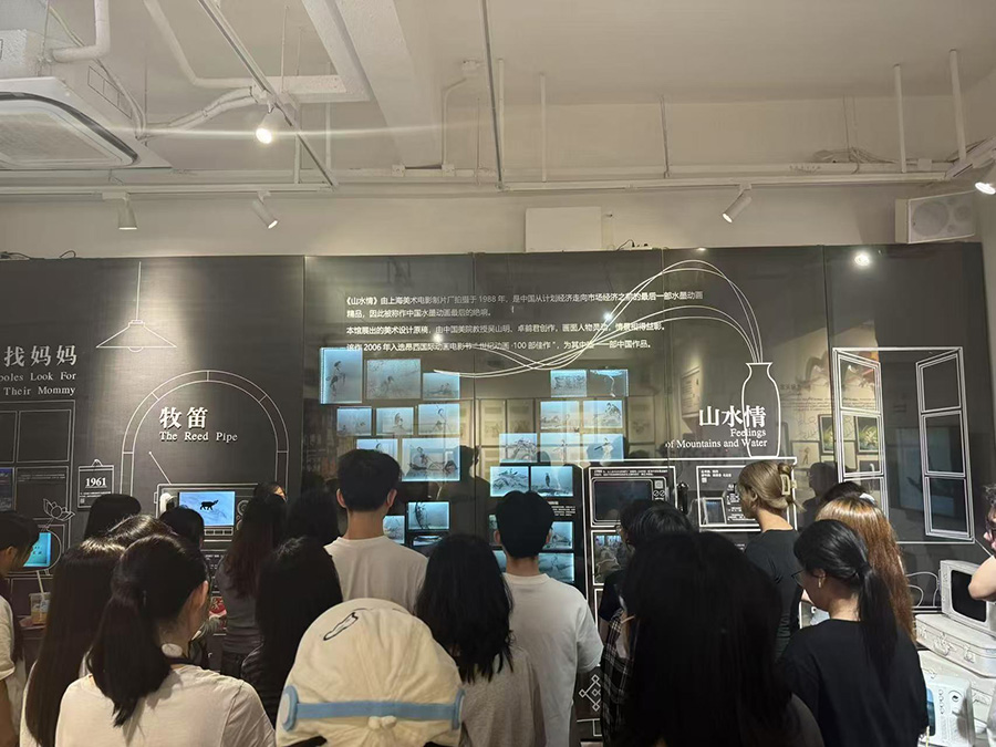 在长达4小时的深度调研中,师生们系统观摩了众多珍贵藏品,如《小蝌蚪找妈妈》原稿、《大闹天宫》分镜稿等,这些历史资料让同学们近距离感受到了中国传统动画的魅力和老一辈动画人的精湛技艺。而《老夫子》与当代艺术结合的宣传海报,则展现了动漫与现代艺术的融合可能。中日动漫文化互鉴特展区更是亮点纷呈,收藏了手冢治虫访华手记原件等珍贵物品,让同学们领略到了国际动漫大师的风采。