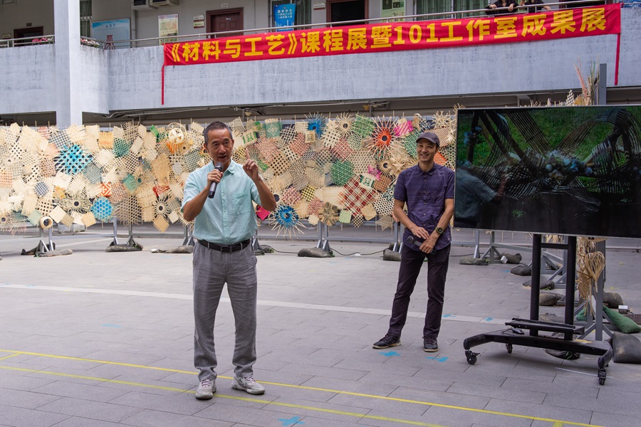 本次展览共展出5个班级、35个小组、200多位同学的竹装置、竹景观等作品。同学们将各自的小样作品汇聚成一个大型竹装置艺术打卡墙,成为展览的一大亮点。此外,各小组通过视频记录了创作过程,既保留了美好瞬间,也在新媒体时代传播了艺术魅力。同时展览也是101工作室成员们的实践和展览策划成果,展览期间,吸引了众多师生前来参观,大家对同学们的作品给予了高度评价。