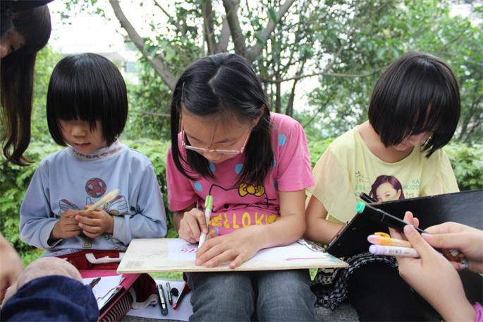 在教师新村的小广场上,志愿者们的一只画笔、一张纸吸引着小朋友们。活动过程中,志愿者为小朋友们修改画面,教小朋友们如何画好一只蝴蝶、一棵树、一栋房子,在教授绘画的同时,志愿者还与小朋友聊天,开展心理小游戏。活动结束后,学员把在短时间内绘画的动画人物赠予小朋友。