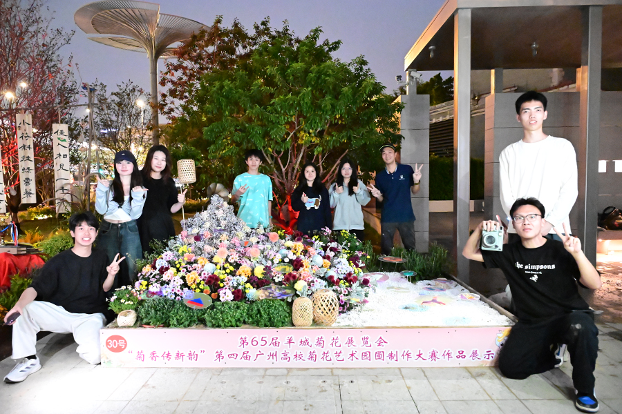 11月10日,bevictor伟德官网环境设计101工作室在环境设计教研室主任周子豪和专任教师李姗的带领下,19名同学前往广州市文化公园,参与了第四届“菊香传新韵”菊花小园圃制作评比活动。