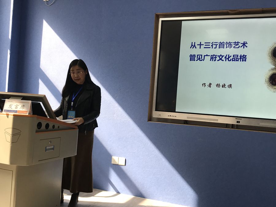 杨晓旗作为广府文化研究基地特聘研究员,连续多年投稿参会。在本届论坛中,担任第三组第一场主持人。也在论坛上发表了《从十三行首饰艺术管见广府文化品格》的论文讲演。本论文是杨晓旗主持的广州市哲社“十三五”规划课题“十三行时期广府地区首饰艺术风格流变研究”与韦德官方网站校级重大课题“广州十三行时期广府首饰艺术风格研究”的研究成果之一。