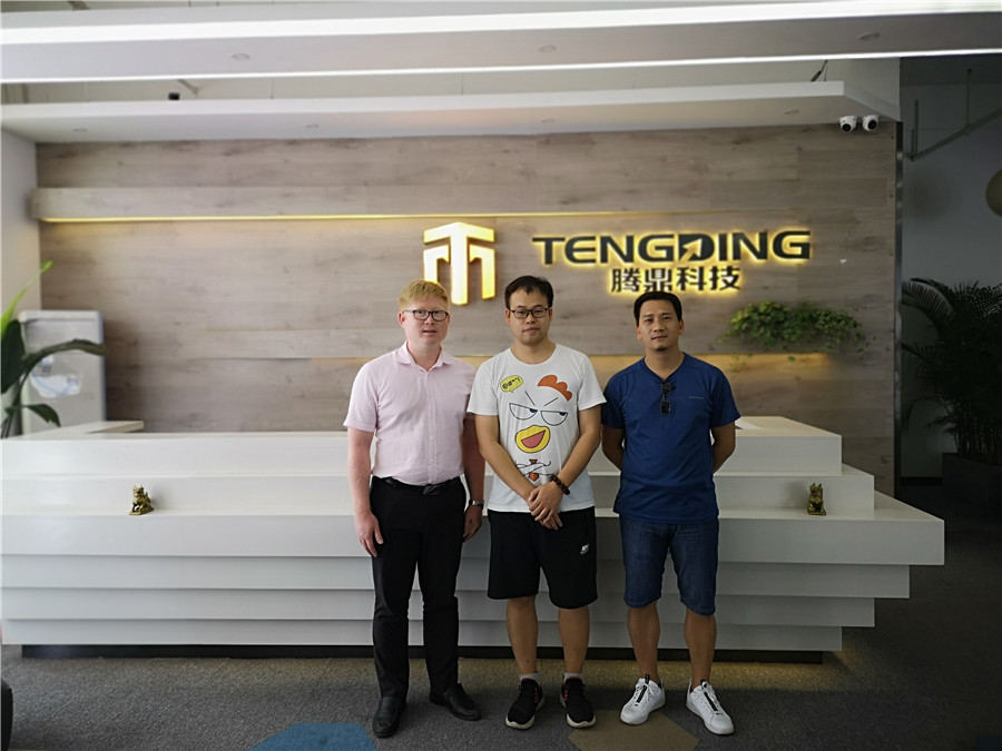 在海南腾鼎科技有限公司,商务总监李水祥接待了公司一行,双方就合作开展学科竞赛、安排员工就业实习,指导员工毕业设计、共建设计项目展开洽谈。赖伟成向李总了解疫情对企业经营状况和就业形势的影响,希望腾鼎科技能优先考虑吸收公司毕业生到企业就业或实习并邀请李总到公司开展专业讲座。