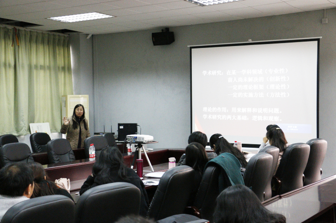 在研究与学术研究部分,杨晓旗为大家分析了研究和学术研究的联系和区别,提出学术研究必须重视专业性、创新性、理论性和方法性,她提醒中青年教师一定要注重对理论知识和研究方法的学习。在如何开展研究部分,杨晓旗讲述了开展研究的流程,即提出问题或假说、用科学的手段去验证、证实或证伪、总结。课题一定要有创新性,可以是问题的创新,也可以是研究理论和研究方法的创新。她以日本电饭煲生产厂家针对日本主妇日记进行的内容研究法的调研研究总结及取得的巨大成果来阐释了研究方法创新的重要。在课题申报部分,杨晓旗从关于选题、前期准备和课题申报三部分进行了解说。她重点强调了选题和前期准备的重要性,提醒大家一定要重视自身知识量的积累,要针对选题查找阅读大量文献和资料,并尽量将这个知识积累行为培养成为自己的习惯。杨晓旗还从细节入手,给大家浏览了不同级别的课题申报书模板和填写要点。在延伸课题部分,杨晓旗强调了课题申报应由单次申报向多层次、多视点密集申报转变,要关注课题的成长性和扩展性,要对自己的研究有规划,并要注意项目团队的合作和搭建。讲座最后,老师们就自己在科研当中遇到的困惑和难题进行咨询,杨晓旗一一进行了耐心而细致的解答。