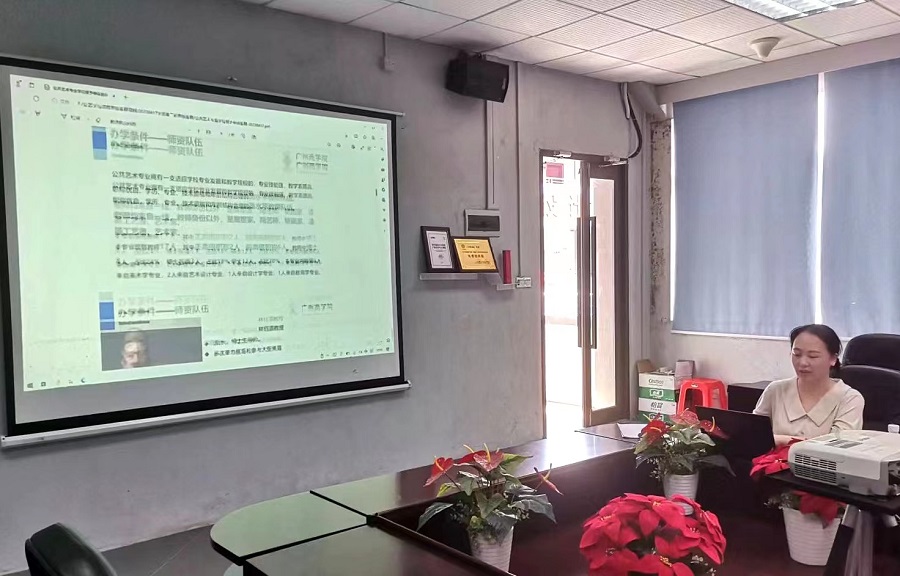 预评审环节中,由公共艺术专业老师蒲艳作公共艺术专业新增学士学位授予申请的汇报。汇报内容围绕办学思路和定位、办学条件、特色亮点资源三点进行展开。在办学思路与定位中指出“为人民的美好生活而设计”的bevictor伟德官网办学理念,紧密贴合着“人民对美好生活的向往”。在办学条件中指出公共艺术专业的教师具备多重属性,老师均来自一线,教师身份以外,是雕塑家、陶艺师、壁画家、漆器工艺者和艺术家。展现多间极具特色的工作室,如“追求永恒的雕塑工作室”、“让美,凝固在泥土中的陶艺工作室”以及面向未来思考的声光电技术融合的“刻录时光公共艺术工作室”。在特色亮点资源中,近年学术科研成果、教学教研成果丰硕,省级教学成果奖、《大匠》系列教材编写、师生获奖与参展等成果显著。尤其在“美育影响力”上,举办了“博士沙龙”、进行了乡村墙绘、校园美化改造、校花校草毕业生礼品设计、校园公共区域作品创作等,这些实践都践行着公共艺术专业最初的办学定位。
