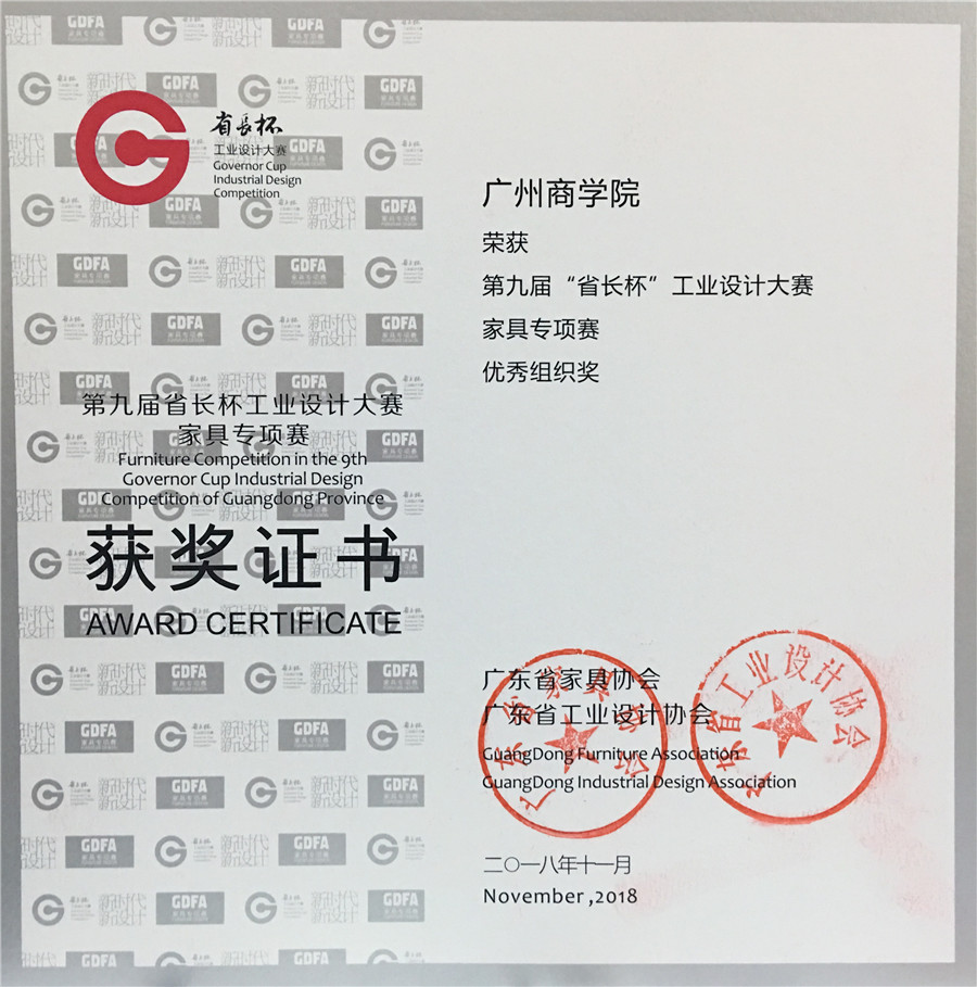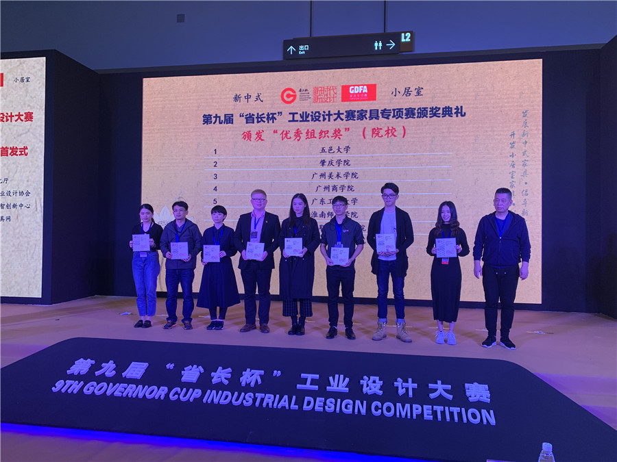 11月30日下午,由广东省工业和信息化厅主办、广东省家具协会承办的广东省第九届“省长杯”工业设计大赛在广州南丰国际会展中心二楼举行颁奖典礼。公司bevictor伟德官网副经理谭杉副教授、辅导员关树基受邀参加颁奖典礼。在此次竞赛中,公司荣获优秀组织奖,是8所获奖院校中唯一的一所民办本科院校。谭杉设计的作品《金字塔》户外家具获得家具专项赛概念组三等奖。