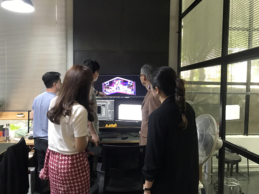 广州传诚数码科技有限公司,是专注于利用3D动画技术为企业提供数字营销推广整体解决方案。数媒专业老师们与企业总监深入交谈现今的3D制片技术,陈教授谈到,3D动画技术作为新兴的高新科技型产业,近年来获得了前所未有的迅猛发展。如今虚拟技术的发展,使得3D影视制作更方便,表现形式也更多元了。传诚影像的企业总监为数媒的老师们展示了公司的作品,并分析它们的制作过程,以及实习虚拟与现实相结合的运用。