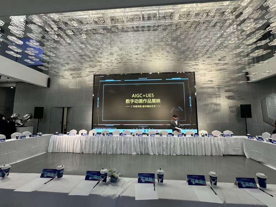 此外,大会特别展示了本院数字媒体艺术专业教学成果作品——《科技与未来》AIGC+UE5数字动画,引起了与会嘉宾的热烈反响,广受好评。