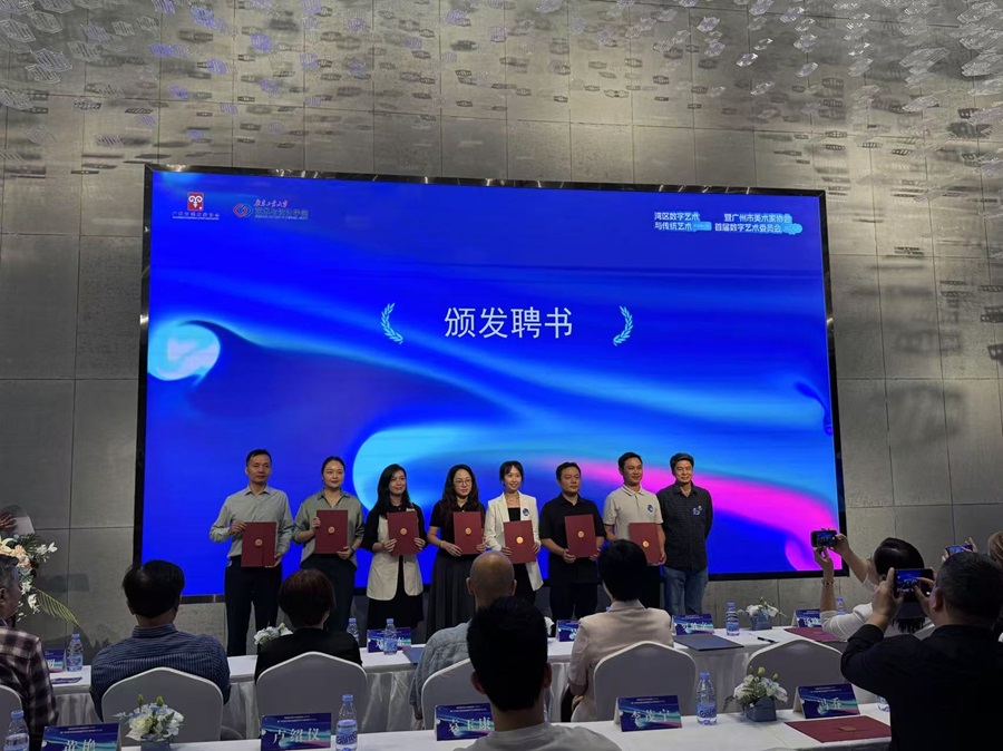 大会由数字主持人小艺和现场主持人谭越共同主持,广州市文学艺术界联合会党组成员、专职副主席吴碧,广州市美术家协会主席刘思东,广东工业大学公司党委书记罗胜京等领导嘉宾出席。在广州市美术家协会主席团成员、秘书长张铁威的宣读下,首届数字艺术委员会成员名单正式公布,公司黄艳老师被聘任为湾区美术界首届数字艺术委员会副秘书长。