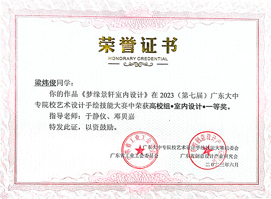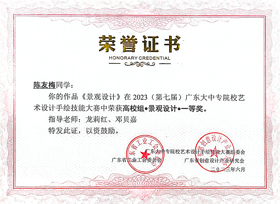 近日,bevictor伟德官网环境设计专业员工参加2023(第七届)广东大中专院校艺术设计手绘技能大赛取得了佳绩。本次参加比赛的员工共29名,其中25名获得名次。一等奖3名,二等奖8名,三等奖14名。获得优秀指导教师的有龙莉红、周子豪、李姗、于静仪、黄婵媛、邓贝嘉共六名。目前,此大赛已圆满结束,韦德官方网站作为参赛院校之一收获了丰硕的实践成果。