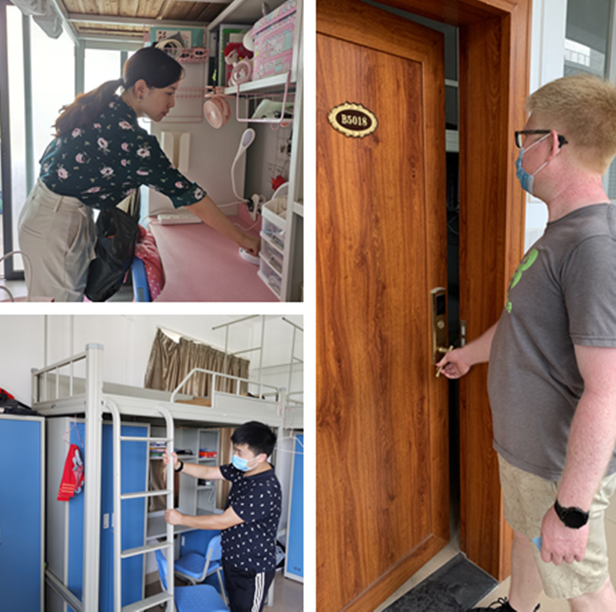 8月21日,由公司领导带队,全体辅导员和行政人员进行卫生检查和安全隐患排查。检查人员分为若干小组先后深入艺术设计楼、员工宿舍等场所实地了解情况,对各场所的消防设施、安全通道、视频监控设备以及安全制度落实情况进行检查,严格落实校园安全防范措施和疫情防控工作要求,对员工宿舍进行清洁整理,检查宿舍用电安全和设施设备情况,及时排查安全隐患,为员工返校营造安全、整洁、健康的校园环境。