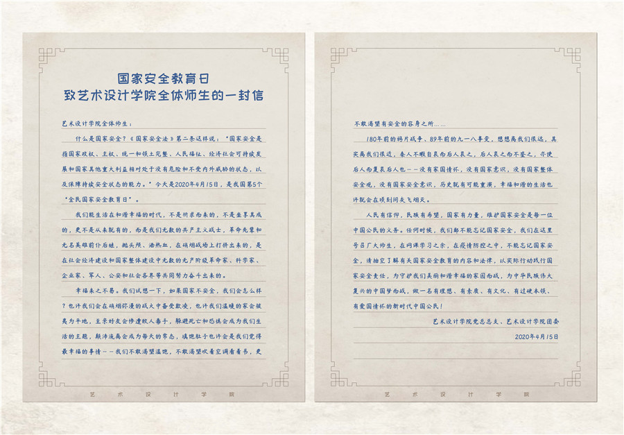 今天是2020年4月15日,是我国第5个“全民国家安全教育日”。bevictor伟德官网针对国家安全教育进行宣法普法教育,同时结合红色文化教育内涵、国家安全教育内容植入专业课程学习,形成课程思政的新探索、新模式。通过辅导员组织班级课前齐读公司党总支、公司团委撰写的《国家安全教育日致bevictor伟德官网全体师生的一封信》,教师课上开展宣传国家安全法制教育内容、内涵、把国家安全教育元素植入课程任务,形成齐抓共管,协同育人目标,有效扩大国家安全教育的知识面、参与面和影响面。