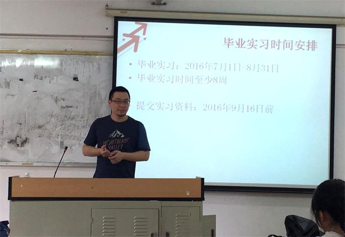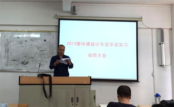 6月16日,bevictor伟德官网2017届毕业生实习动员大会分两场在艺术楼301召开。环艺教研室主任阳林杰老师,视觉教研室主任谢建鹏老师,2013级辅导员黄荣美以及相关实习指导老师、2013级全体员工参加了本次动员大会。会议由谢建鹏主持。