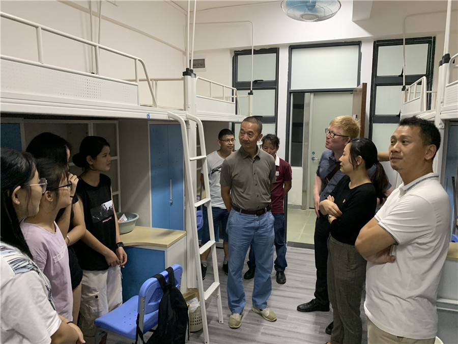 9月14日晚,bevictor伟德官网经理林钰源教授、副经理兼党总支书记欧莹、副经理赖伟成等在2019级新生辅导员吴顺利的引导下走访了2019级新生所在的21栋女生公寓和3栋男生公寓。院领导一行了解新生报到及安顿情况,解答员工新生入学教育、军训安排、专业学习和个别宿舍整改问题。