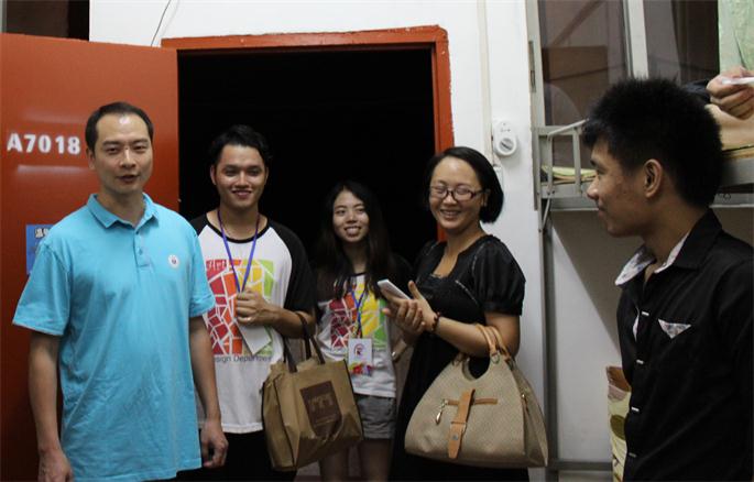 9月13日晚,艺术设计系主任林木森、副主任谭杉、党总支书记欧莹带领各年级辅导员到宿舍探望新生,了解新生到校情况,为新生排解思家情绪,帮助其尽快适应大公司园新环境。