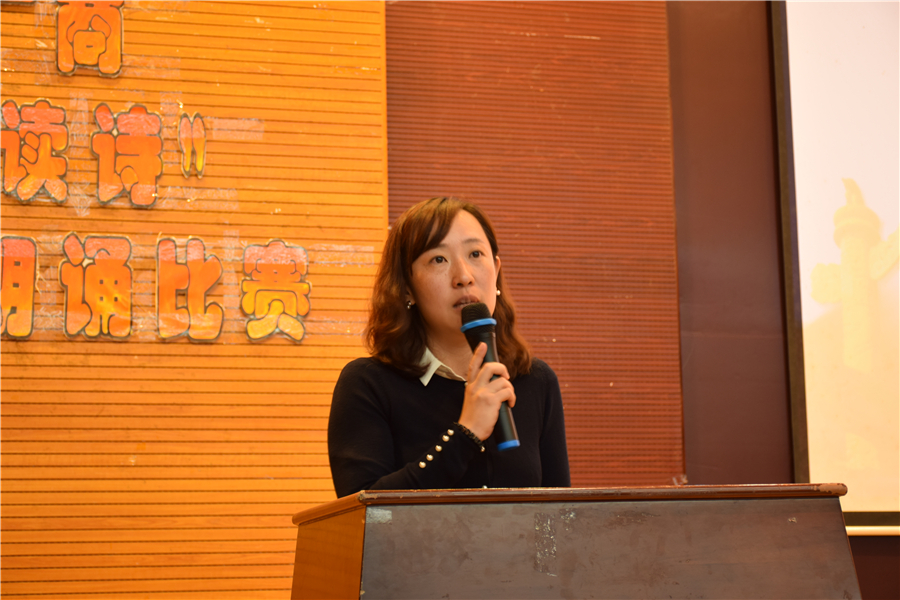 在活动最后,公司党总支书记欧莹上台讲话。她表示举办红色诗歌朗诵比赛,是进一步响应公司党委书香广商建设的号召,结合bevictor伟德官网的红色文化教育,把红色经典和红色文化融入同学们的思想、血液和骨髓当中,从而开拓同学们的阅读视野,提升同学们的文化品味。最后,欧莹书记对本次活动的参赛者以及工作人员进行赞扬并祝愿书香广商系列活动取得圆满成功。