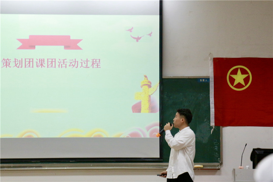 随后由获得“活力在基层”主题团日设计大赛三等奖的环境1802班团支部上台分享,团支书刘敏以《我与祖国共成长,争做先进好支部》为主题,讲述了自己对一个优秀的团支部的理解,并介绍团支部举办的各类活动及其获得的荣誉。此外,他还通过视频的方式生动展现了支部开展团组织生活的全过程,让在座的团员们了解团组织生活背后的点滴故事。