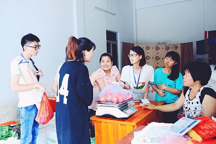 街道上,村民们都很欢迎我们的到来,记得第一天到达下乡基地已是中午,公司附近的饭店老板得知服务队下乡的目的后,他热情地说:“自己煮饭多麻烦啊,快来我这里吃吧,不要钱。” 村民热情地告诉我们,在村里即使晚上单独在外面行走都不会有危险,很安全。