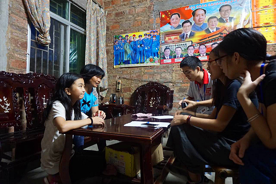家访时,我们感受到本地人对教育的重视。登畲村的留守儿童不多,但由于家庭人口多,家长整天忙于赚钱养家,很少陪伴孩子;因为自身的文化水平较低,家长更加渴望孩子能够成才;就算家庭经济困难,也希望支持孩子顺利完成高中教育,甚至考大学。六年级(2)班员工温锦云,谈吐气质俱佳,喜欢与队员们聊文学;通过家访,其母亲介绍温锦云从小就喜爱读书,家里没有电脑,于是家里支持她把零花钱攒起来买书和借书看,目前家里客厅堆满了国内名著。