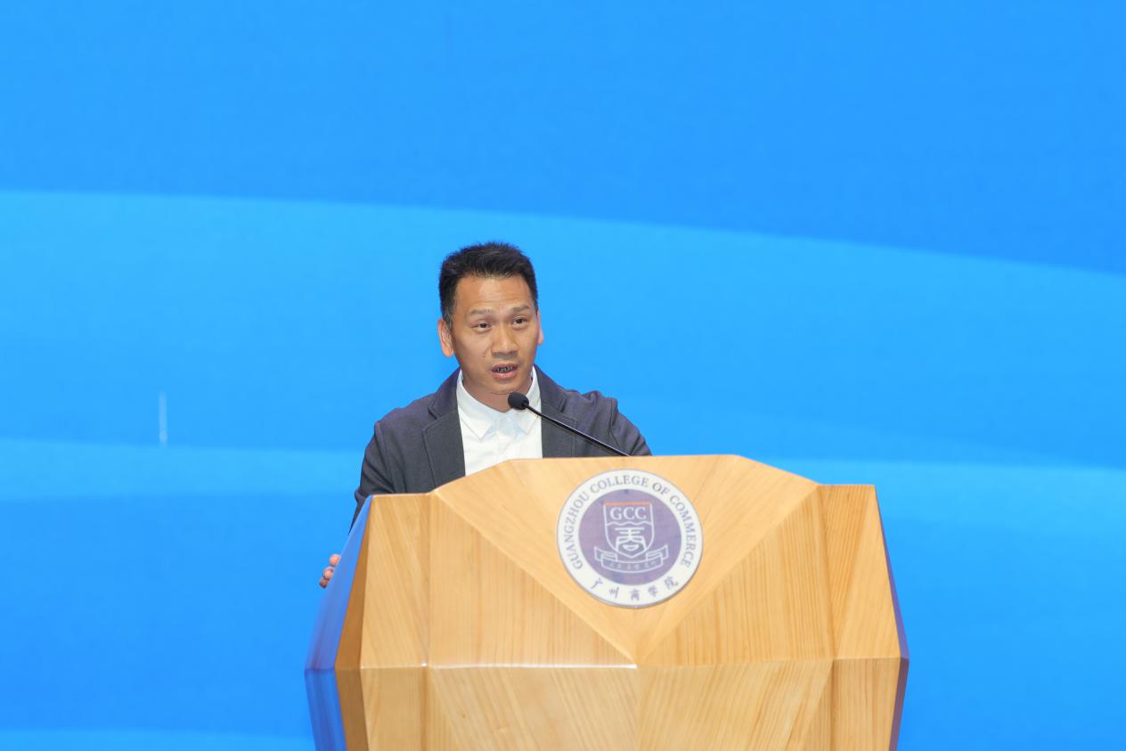 林钰源发表致辞。他向莅临现场的领导、嘉宾及教育同仁表示热烈欢迎,并对联合主办、协办单位及全体筹备人员致以衷心感谢,并向获奖同学、指导教师及各参赛单位致以热烈祝贺,同时向长期关心与支持大湾区美育事业及公司艺术教育发展的各界人士表达崇高敬意。他在讲话中系统阐述了公司的教育理念与发展方向,明确提出以培养具备国际视野的一流艺术人才为核心目标,精准呼应新时代文化强国建设的根本要求。他强调,“人”是设计创作的根本尺度,体现以人为本的价值导向;“美”是艺术的核心内涵,承载审美素养与精神升华的双重功能。这些要素既是艺术教育的本质追求,也是中国提升全球文化软实力的关键支撑,对推动中华文化的传播与创新具有深远意义。