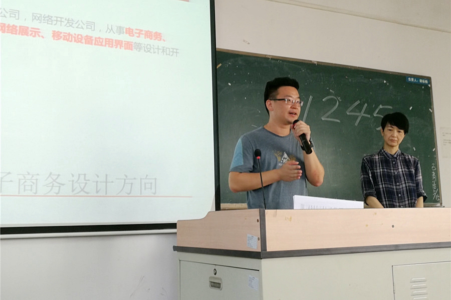 黄明珊介绍了专业的三个方向,分别是平面设计与文化传播方向、品牌管理与广告设计方向、电子商务设计方向。她向大家解释了这三个方向的相同点和不同点,培养的方向和未来从事的工作岗位。谢建鹏详细说明接下来两年的课程安排和所需要修的学分,让同学们更加清楚未来的学习安排,帮助同学们能够结合自身条件去选择自己感兴趣的方向。在提问环节,同学们对专业方向相关内容积极提问,老师们对同学们的提问做出针对性回答。