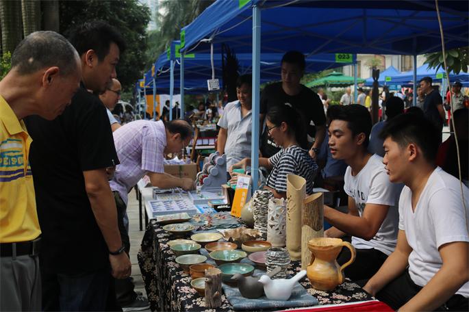 9月24-25日,在公司领导的重视与推荐下,bevictor伟德官网首饰工作室与陶艺工作室积极组织师生参加于广州二沙岛举行的岭南青年工艺集市活动。本次活动由广东中华民族文化促进会和广州工艺美术行业协会主办的,旨在为正在学习或从事工艺美术创业的年轻人提供一个显才华、展技艺的舞台,以推动传统工艺美术的持续健康发展。集市共吸引了300多名青年艺术家参加,其中不乏广州传统工艺的传承人艺徒,社会一批年轻工艺美术工作者,同时,参展作品有中国陶瓷艺术大师翟惠玲、中国陶瓷艺术大师谭广辉、“广彩”传承人周承杰等广彩领军人物等。
