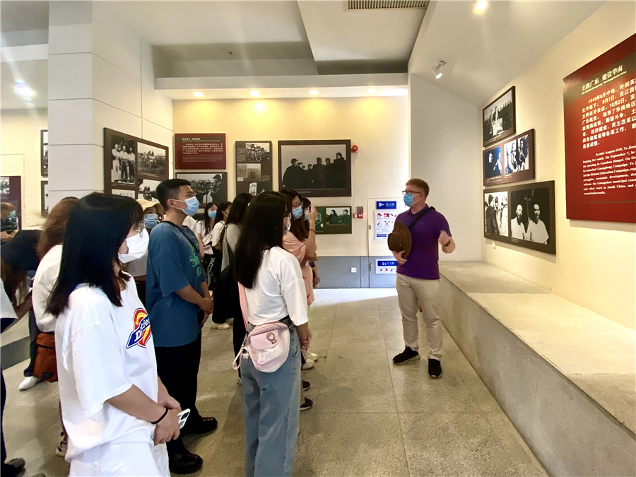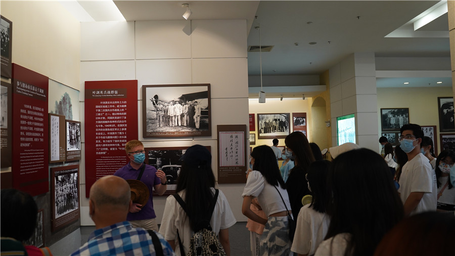 在馆内,支部书记关树基首先向员工党员介绍了叶剑英同志生平对中国无产阶级革命、国防事业建设、广东省建设以及对广东省教育事业发展起到的重要作用。在讲解中,他希望全体党员积极参与党史学习,务必做到学史明理,学史增信,牢记中国共产党人为中华民族谋复兴,为中国人民谋幸福的初心使命。随后,他带领员工党员参观展馆中的陈列并解说叶剑英元帅一生的伟大业绩和卓越贡献。