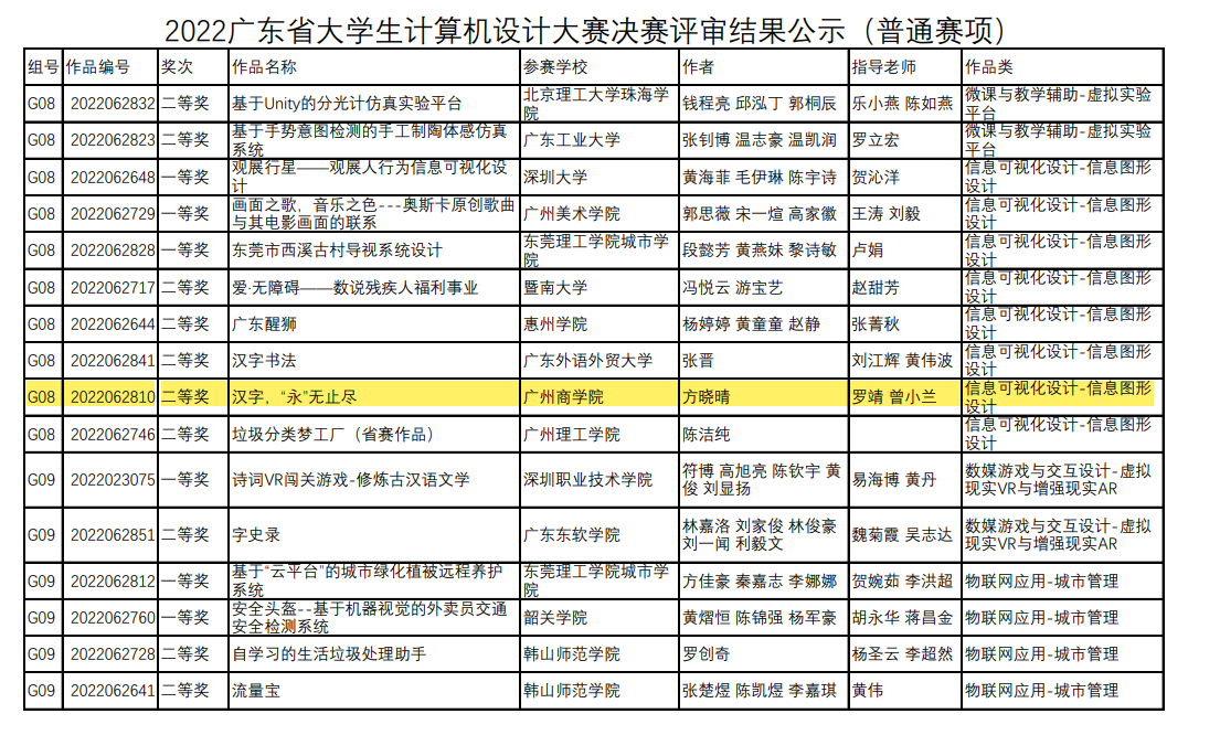 6月21日,由广东省教育厅主办,广东外语外贸大学承办的“2022广东省老员工计算机设计大赛”决赛评审结果公示,bevictor伟德官网获得一等奖一项,二等奖一项。