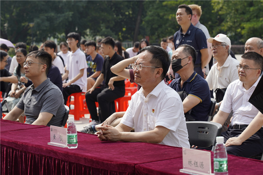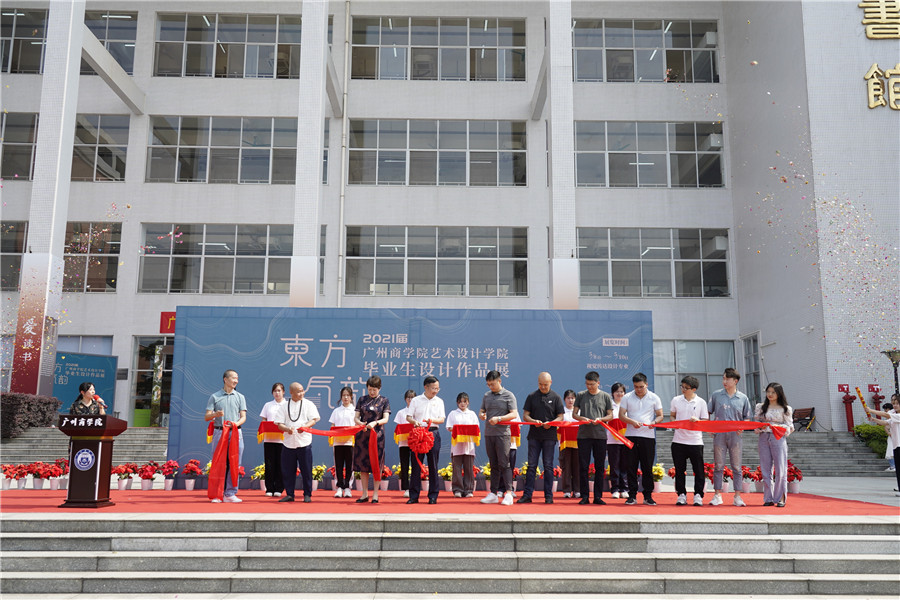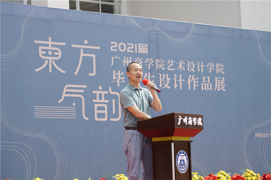林钰源还在开幕式现场宣布“东方·气韵——2021届毕业生设计作品展”开幕。伴随着歌声响起,礼炮齐鸣,黄弢、王真、彭娟、林钰源、熊应军及部分企业代表为“东方·气韵——2021届毕业生设计作品展”剪彩。