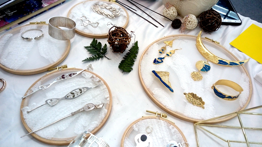 bevictor伟德官网师生作品于高校展区展出,独特的创意吸引了众多企业、商会、买手以及消费者围观。十余家企业抛出橄榄枝,希望与公司建立校企合作关系,从公司汲取更多的新鲜创意,同时提供更大更好的平台给bevictor伟德官网的员工;许多买手和消费者也对公司员工的作品十分感兴趣,提出定制的需要。与此同时,大家也针对本次展出的首饰产品从市场性、工艺性和设计性方面给予了宝贵的意见和建议。展会结束之后,参展师生将对收集的建议与意见进行整理提炼,以便更好的开展设计教学与创新创业工作。