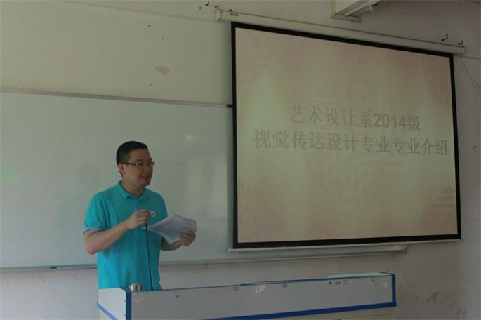 9月14-15日,为深化2014级新生对专业的认识,增强专业认同感,艺术设计系在教学楼B205、B206、B101分别开展2014级产品设计、环境艺术、视觉传达设计专业认同教育活动。各教研室主任及教师代表、各年级辅导员以及2014级全体新生参加此次大会。