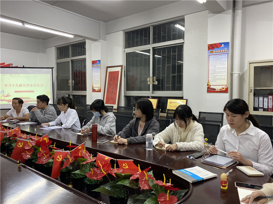 12月16日晚,2018级员工党支部在艺术楼105党员活动室开展党的十九届五中全会专题学习会。会议由党支部书记关树基组织,全体员工党员参加会议。